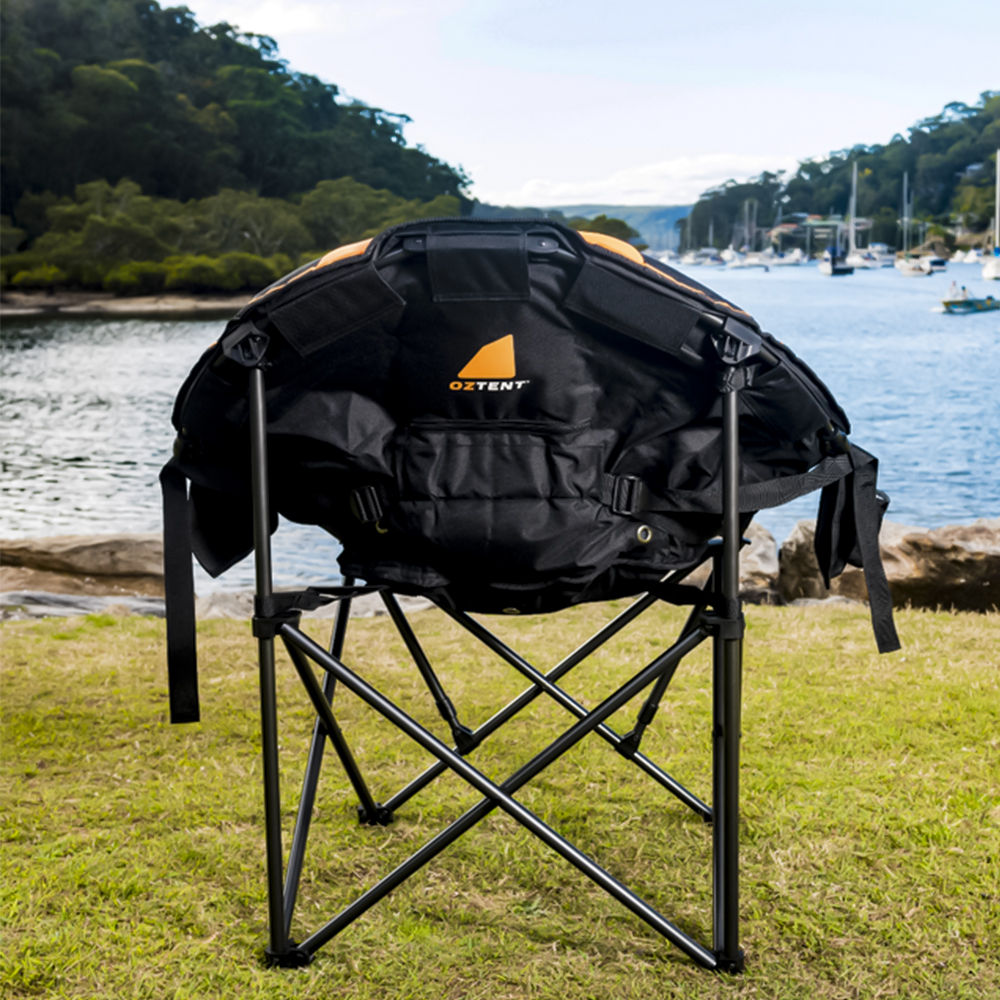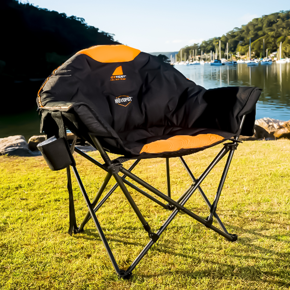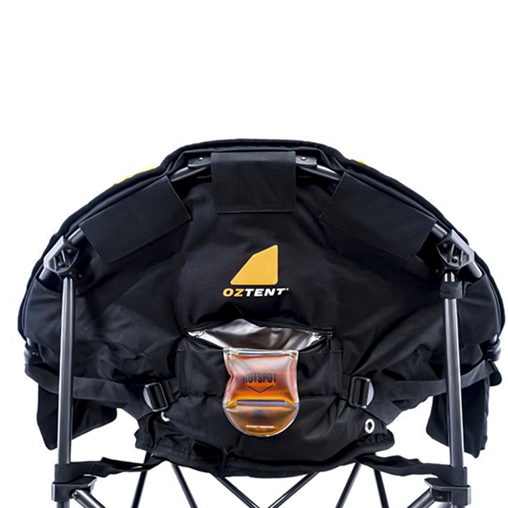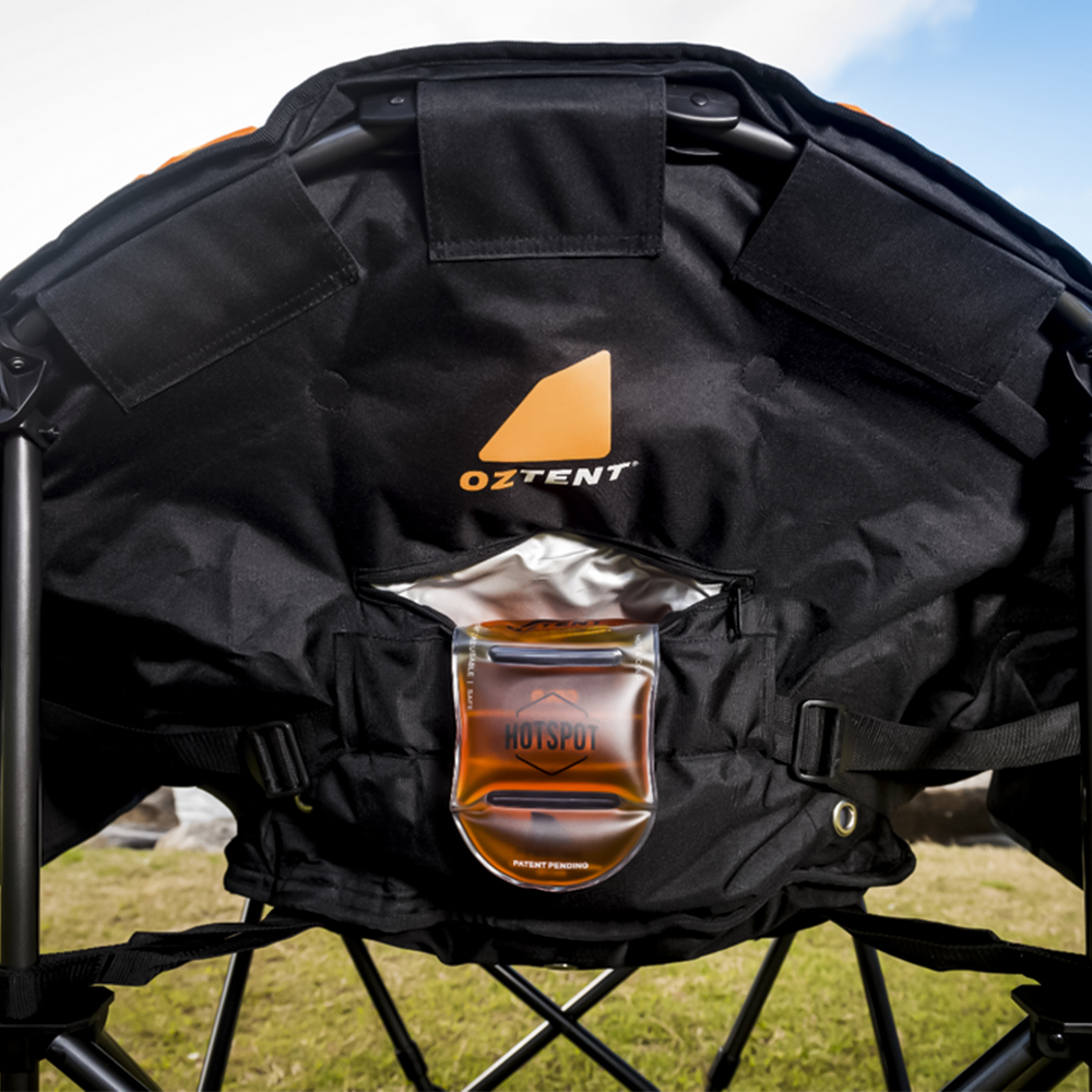 The OZTENT Koala HotSpot™ Lounge chair is the ultimate in luxury camp chairs for all seasons. It also incorporates our lumbar support system and is made with a super high quality construction using luxurious 600D diamond Ripstop polyester that is fully padded with a massive weight rating of 200Kg. You have an insulated drink and phone holder on one side and two mesh pockets on the other to store your other goodies. It also includes one HotSpot™ pouch. Then in the front we have added a hidden under seat pocket.