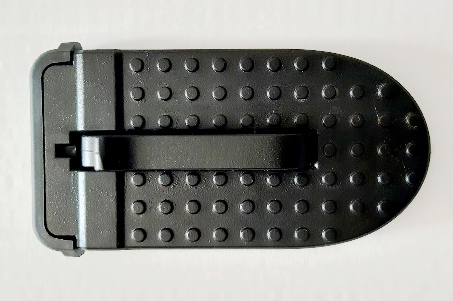 Feito em alumínio lacado a preto com superfície antiderrapante e borracha de proteção.