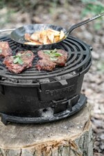 Anyone who likes cast iron will love the Petromax Fire Barbecue Grill tg3. The height-adjustable grilling grate, the large air supply control and the handle make it not only a compelling grill, but also a perfect cooking area for your Petromax Dutch Ovens (up to size ft12).