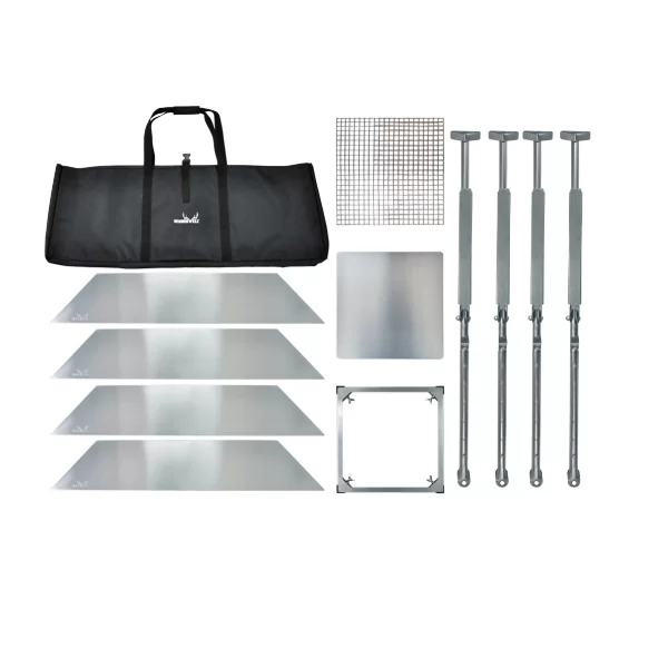 O Fire Guard é altamente recomendado para ser usado quando crianças pequenas e animais de estimação estão presentes para evitar o contato não intencional com um firepit ou salamandra. Também é importante usá-lo durante o sono para eliminar o risco de queimar o saco de dormir pelo mesmo quando se encontra quente. O Fire Guard também pode ser usado separadamente como uma mesa ao redor para um banquete de churrasco.