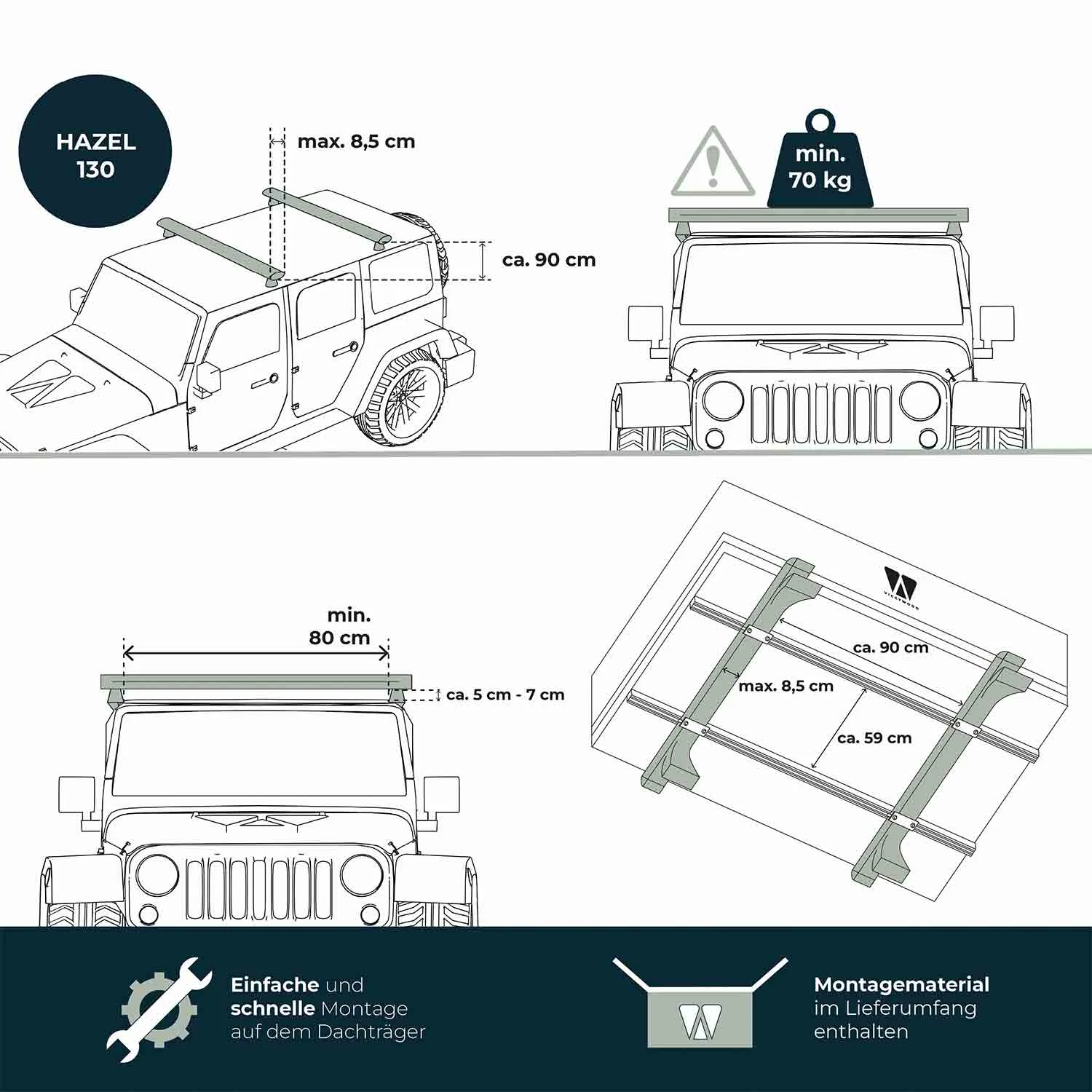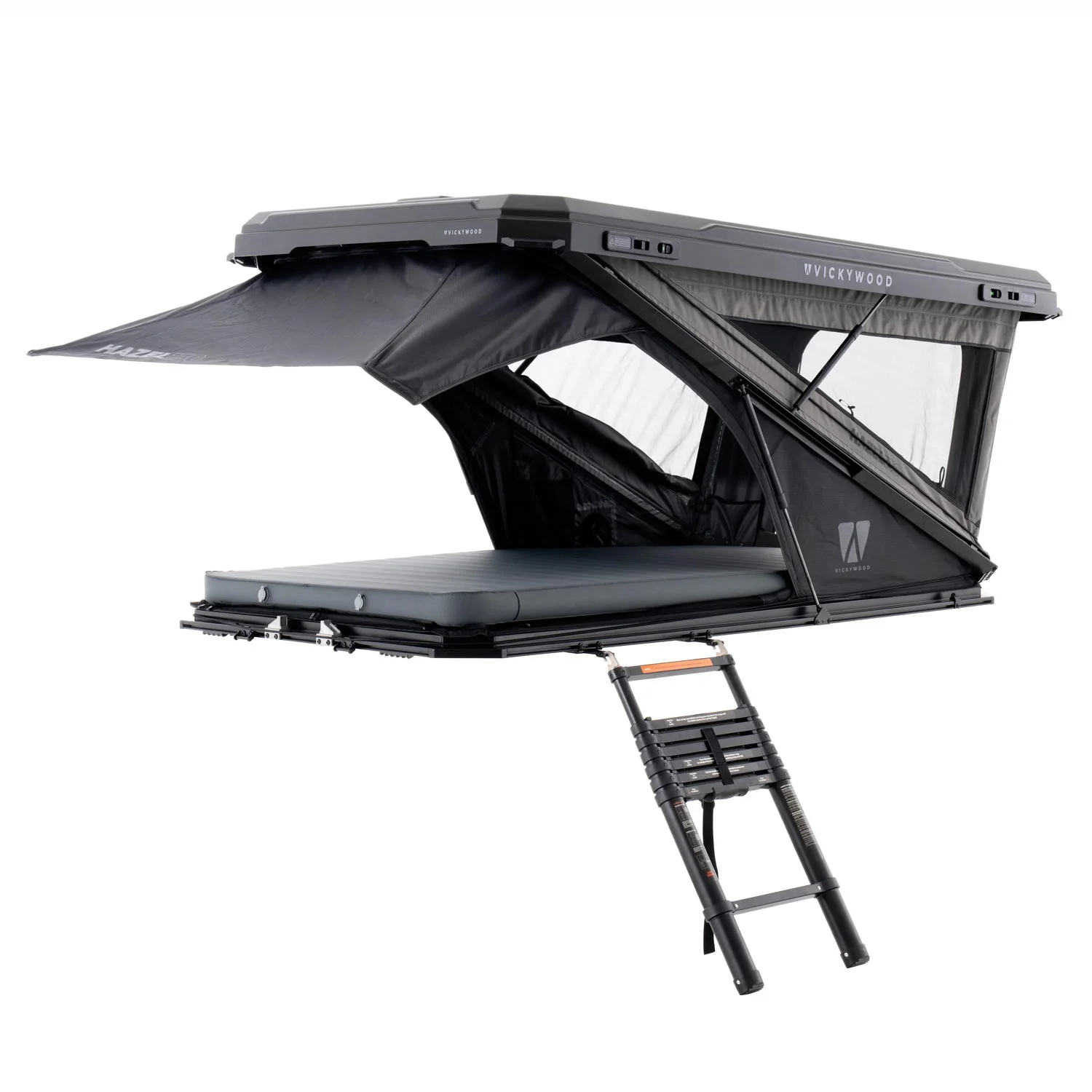 A Tenda de Tejadilho Híbrida VICKYWOOD HAZEL combina as vantagens de uma tenda triangular clássica com a funcionalidade de um sistema pop-up. O seu invólucro rígido em ABS leve e os dois pares de amortecedores a gás STABILUS® permitem uma montagem ultra-rápida e sem esforço – perfeito para viajantes que não abdicam do conforto ou da conveniência.