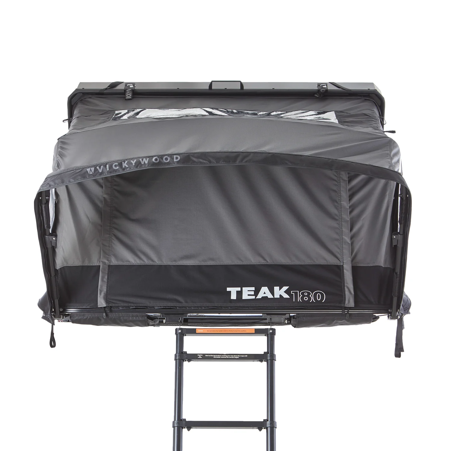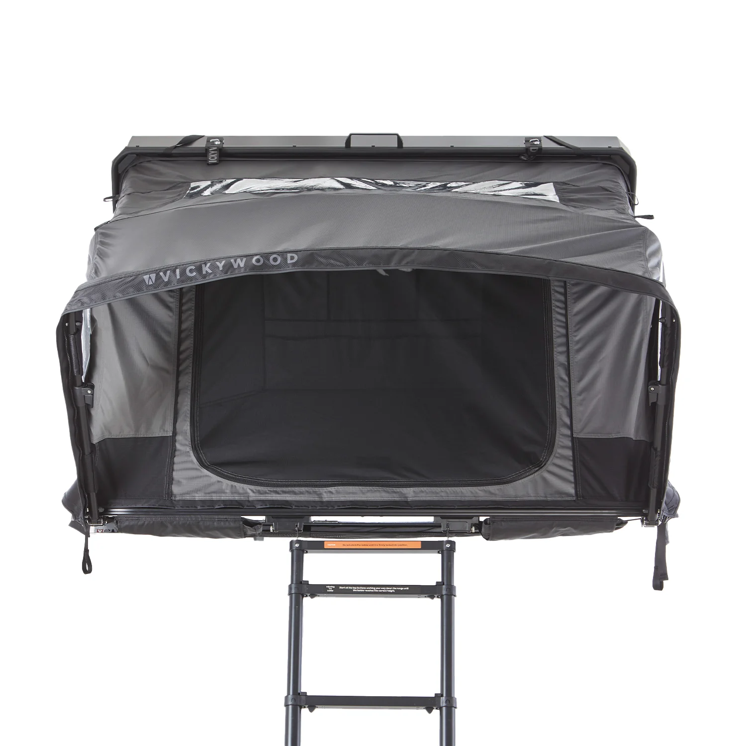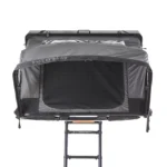 A escada dobra-se e permanece dentro da tenda quando esta está fechada.