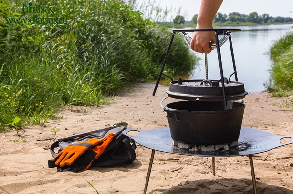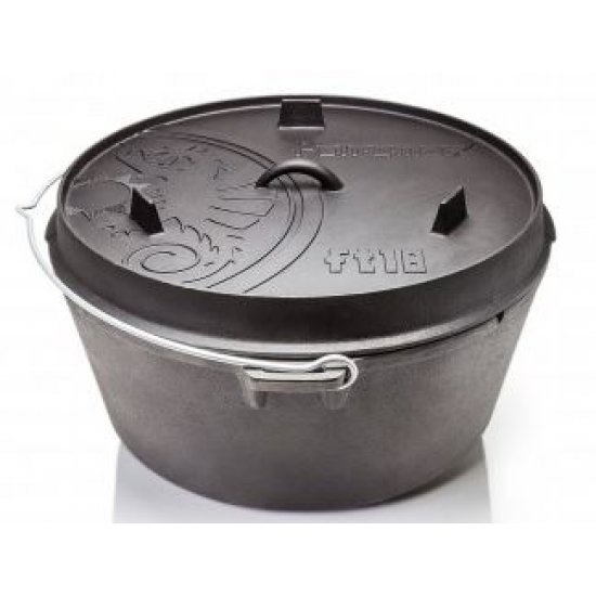 Devido às excelentes propriedades do ferro fundido e à estrutura especial da superfície, o calor é armazenado e difundido de forma eficiente e homogénea. A superfície pré-tratada (acabamento temperado) torna desnecessário um tempero inicial e a robusta Panela Holandesa pode ser usada imediatamente. Ao ar livre é utilizada em fogo de lenha ou com carvão. A borda elevada da tampa permite colocar brasas ou carvão permitindo a ultilização como Forno.