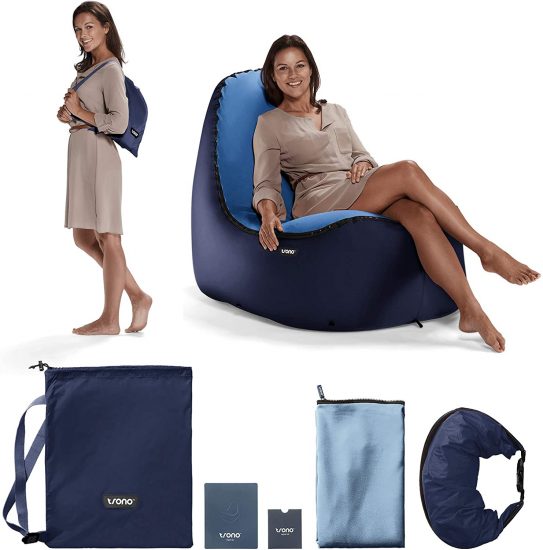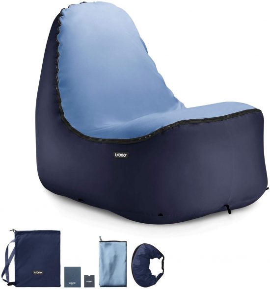 • WHY THIS REVOLUTIONARY INFLATABLE CHAIR BEATS THEM ALL: Inflatable outdoor blow up hammock are awesome, if you want to snooze! Personally, we love to sit up in comfort so we created this COMPACT air lounger from COMMERCIAL GRADE PARACHUTE MATERIAL w/ DURABLE DOUBLE-STITCHING, a plush SUEDE SEAT COVER. Need to tackle windy, rugged terrains? Add the Optional rugged rock defying base & the anchor to your cart before you check out!
