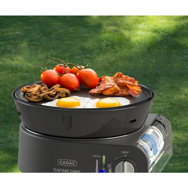 Despite its small size, the Safari Chef Compact is extremely versatile due to the various cooking tops included; a pot stand, BBQ grid, flat plate and pot/lid. Use the pot stand to cook a pot of soup or pasta. The BBQ grid and flat plate have CADAC’s GreenGrill coating and are perfect for baking and grilling meat, fish and vegetables. The lid can also be used as a pan and is therefore multifunctional.
